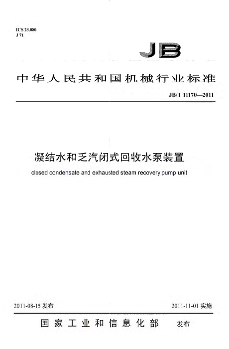 凝結(jié)水和乏汽閉式回收水泵裝置