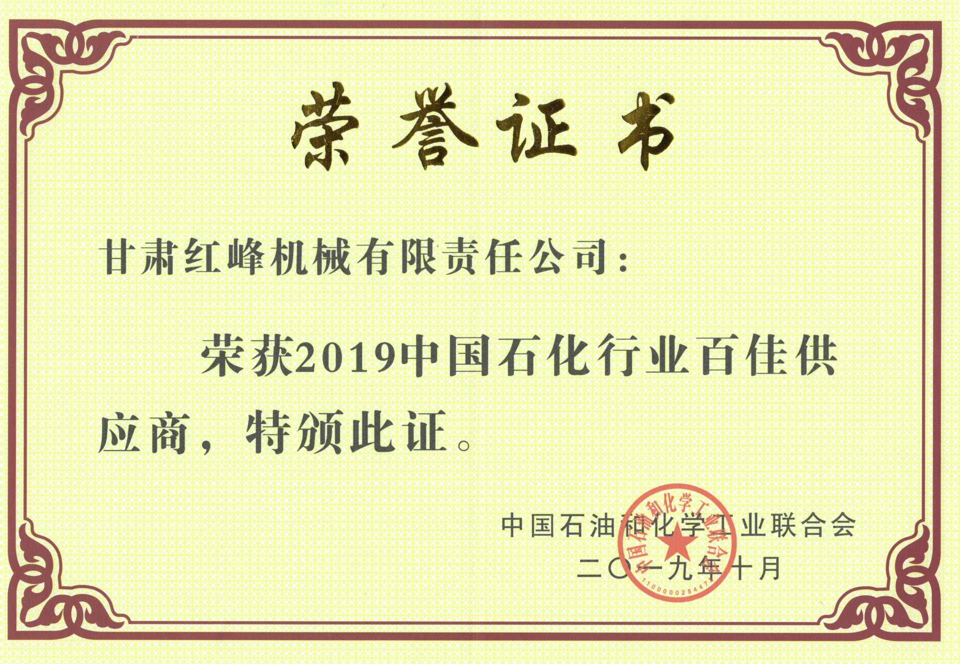 2019年中國石化行業(yè)百佳供應(yīng)商