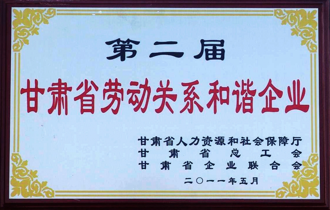 2011年甘肅省第二屆勞動關(guān)系和諧企業(yè)