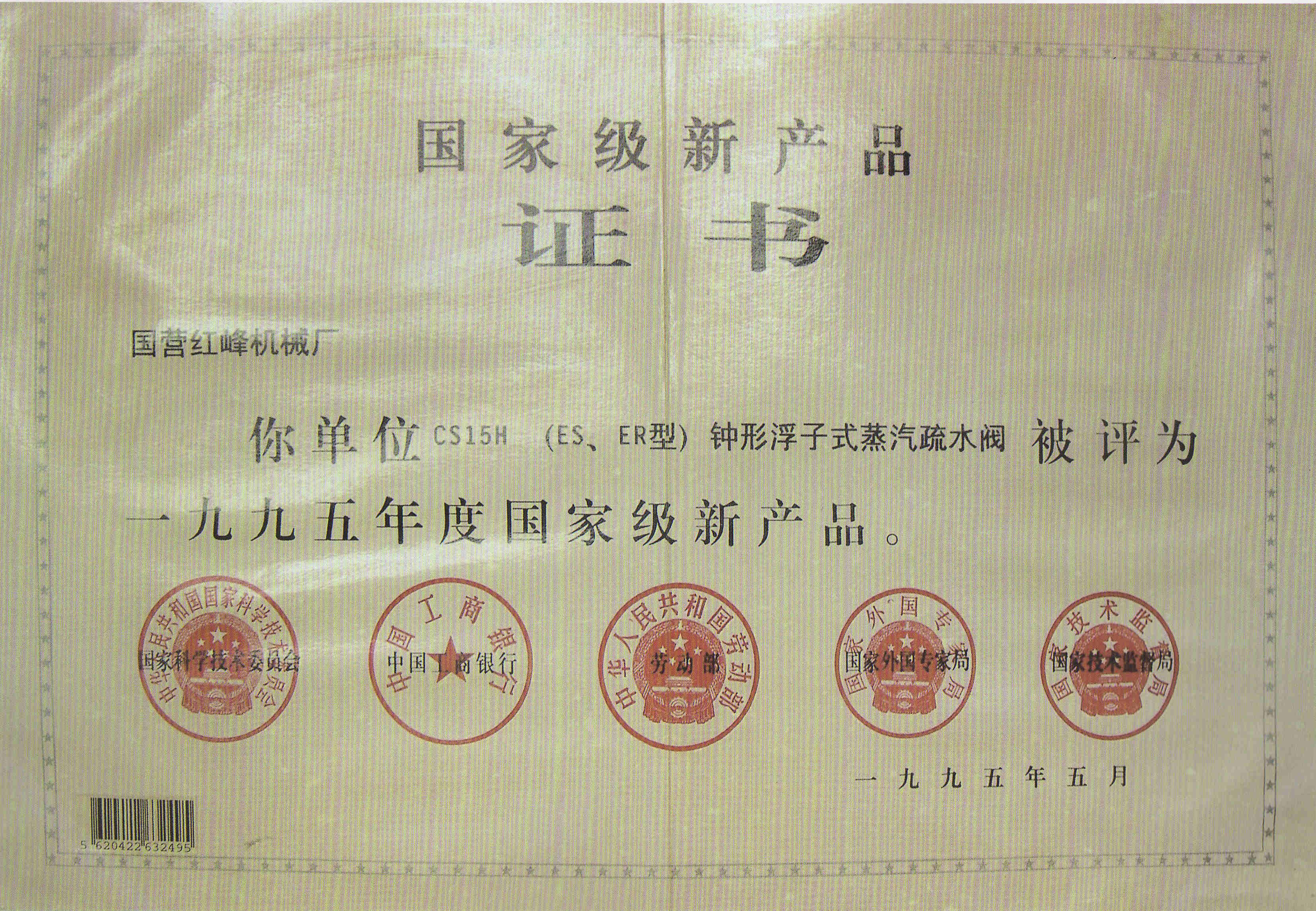 1995年國家級新產(chǎn)品(CS15H型蒸汽疏水閥)