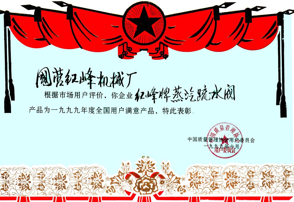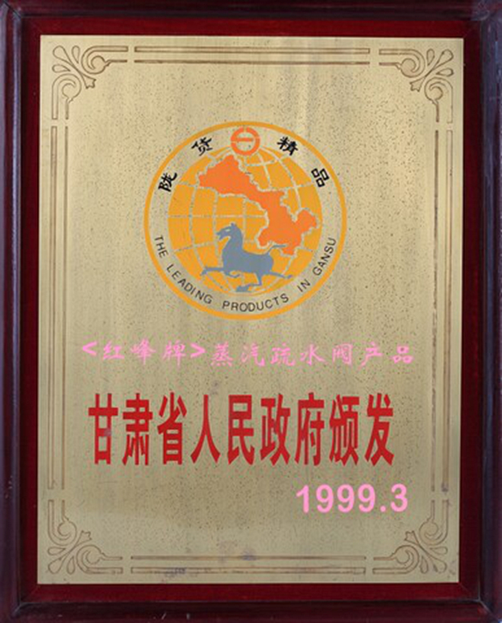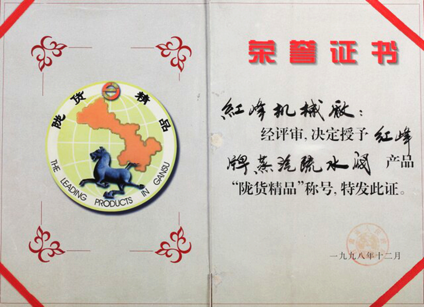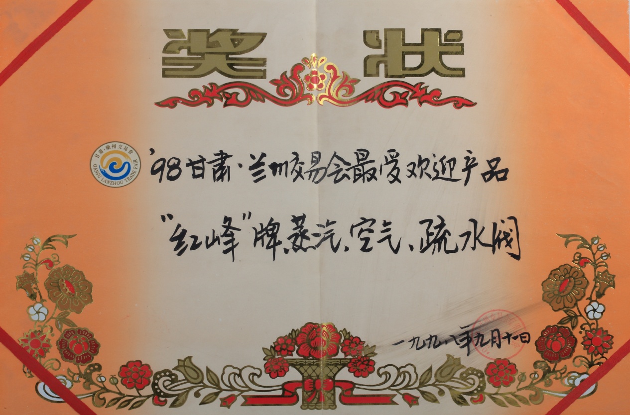1998年甘肅名牌產(chǎn)品(紅峰疏水閥)