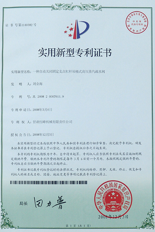 一種自動(dòng)關(guān)閉固定支點(diǎn)杠桿吊桶式高壓蒸汽疏水閥