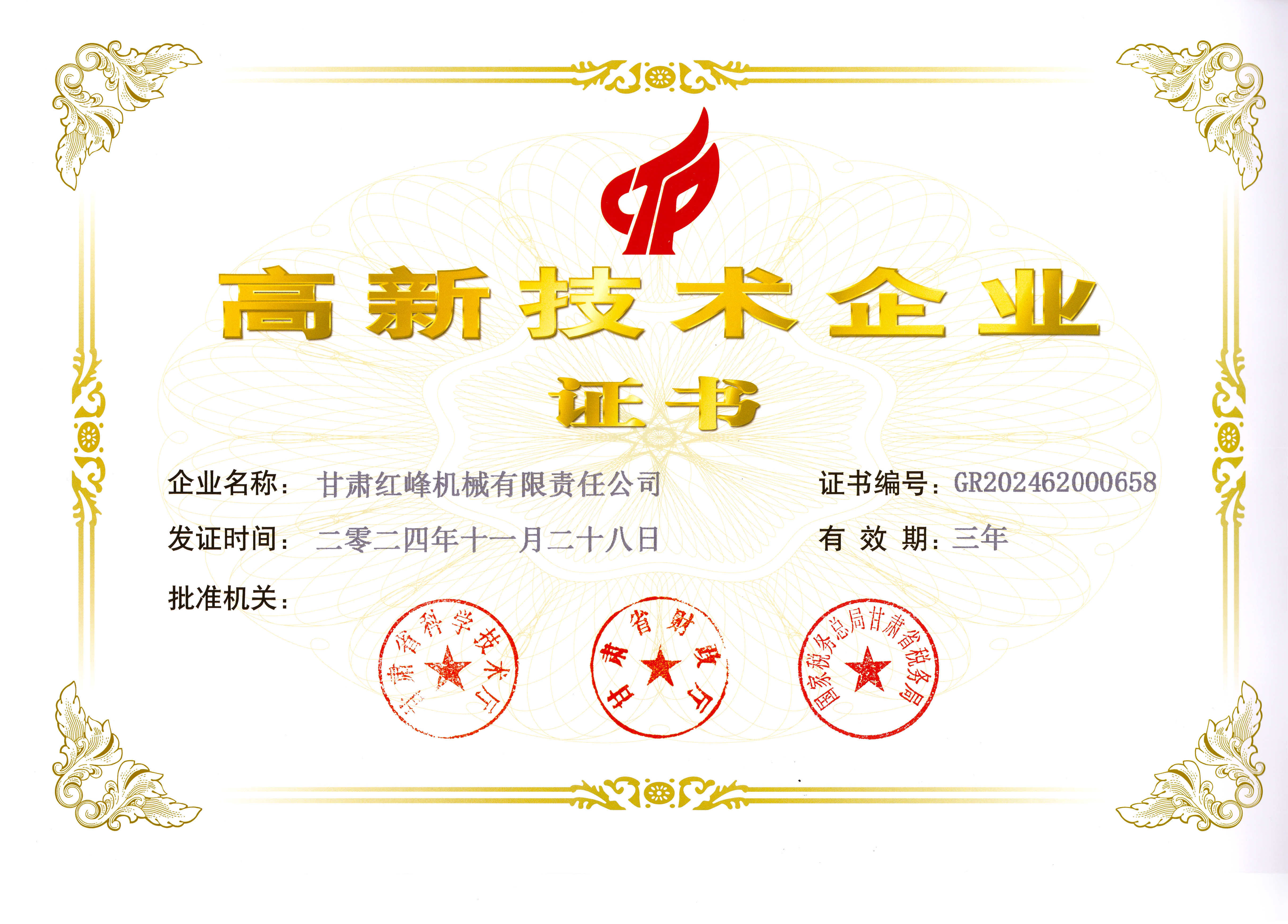 近期,全國高新技術(shù)企業(yè)認定管理工作領(lǐng)導小組辦公室發(fā)布《對甘肅省認定機構(gòu)2024年認定報備的第三批高新技術(shù)企業(yè)進行備案的公告》,公司被列入甘肅省認定機構(gòu)2024年認定報備的第三批高新技術(shù)企業(yè)備案名單。本